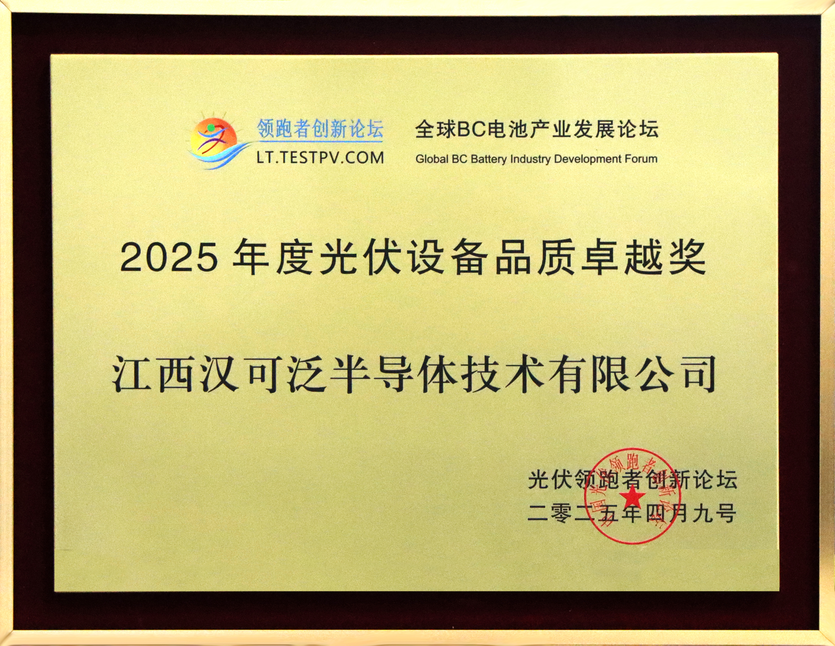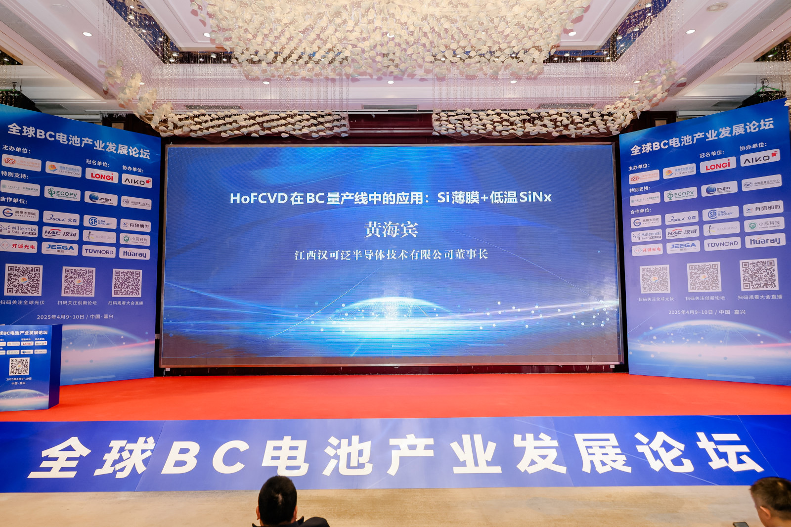 報告介紹了漢可HoFCVD設備優勢,HoFCVD具有鍍膜速度較快、質量更高,無等離子損傷,面積增大容易、無粉塵、無繞度,等優勢。基于此,漢可公司開發了低溫氮化硅,電池片邊緣鈍化等一系列裝備產品和新應用,性價比優異。江西漢可HoFCVD裝備“產能大,維保少,電池性能還好;價格低、運維低,還綠色環保”。 在本次大會上,黃海賓博士就HoFCVD技術在BC量產線上的應用提出了全新的解決方案(硅薄膜+低溫氮化硅),榮獲了“2025年度光伏設備品質卓越獎”。