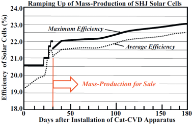 圖10一家太陽能公司采用Cat-CVD設備用于大規模制備SHJ太陽電池的效率數據