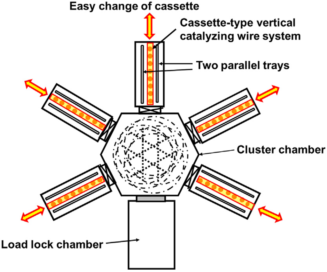 圖9催化熱絲安裝在盒子里的一種用于大規模生產的Cat-CVD設備模型